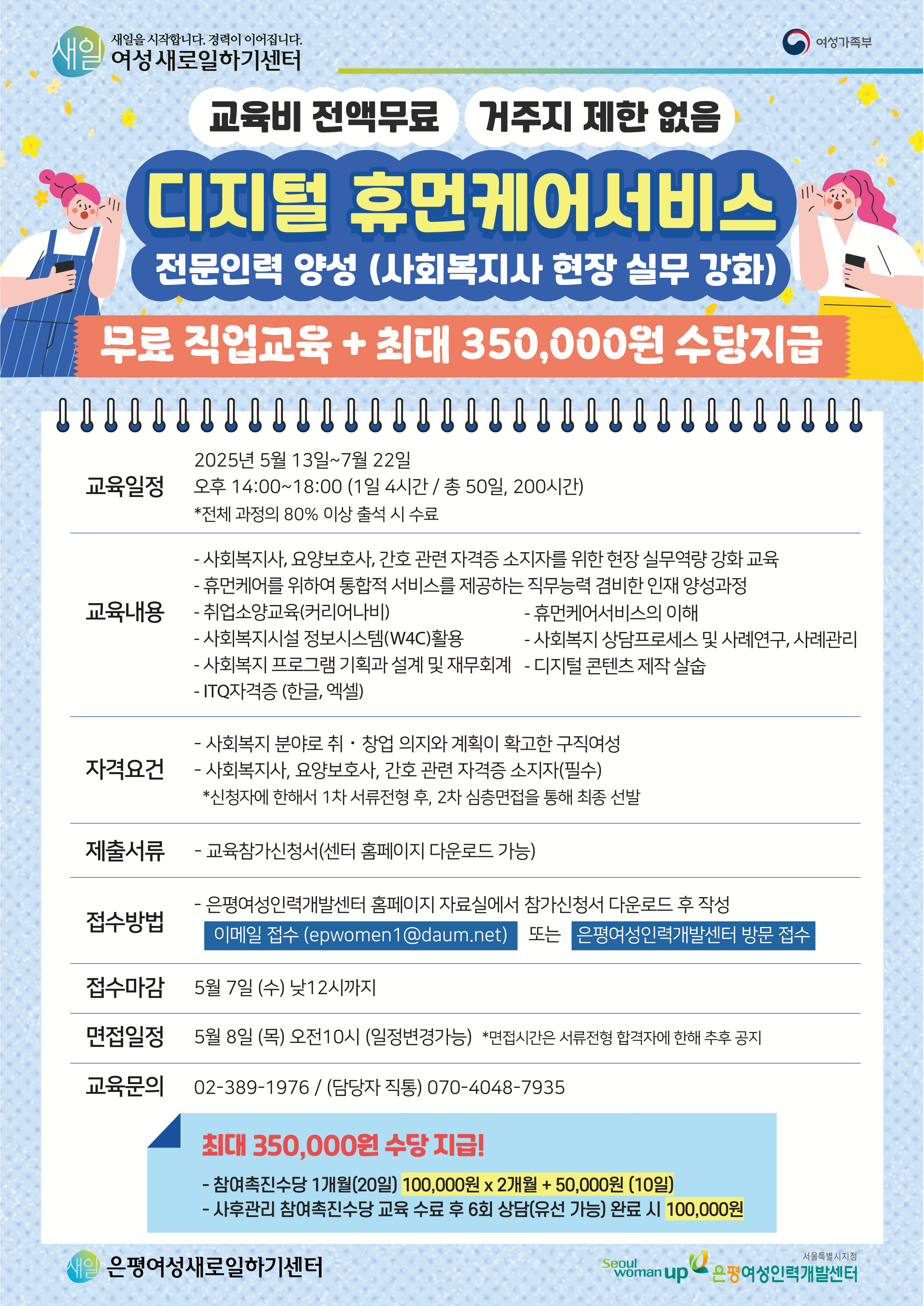 | 2025년 디지털휴먼케어서비스 전문인력 양성 직업훈련과정 [교육참가신청서].hwp (77 Kbyte) |